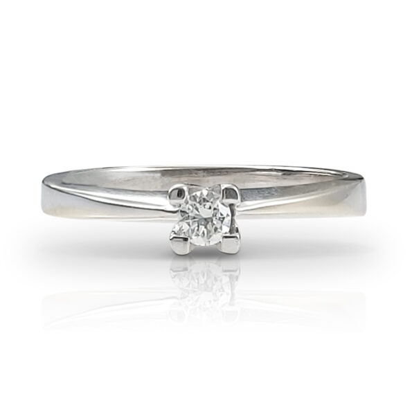 A white gold ring for a woman, weighing 4.20 grams, set with a natural, clean diamond of 0.18 carat.
