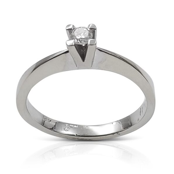 A white gold ring for a woman, weighing 2.80 grams, set with a natural, clean diamond of 0.17 carat.