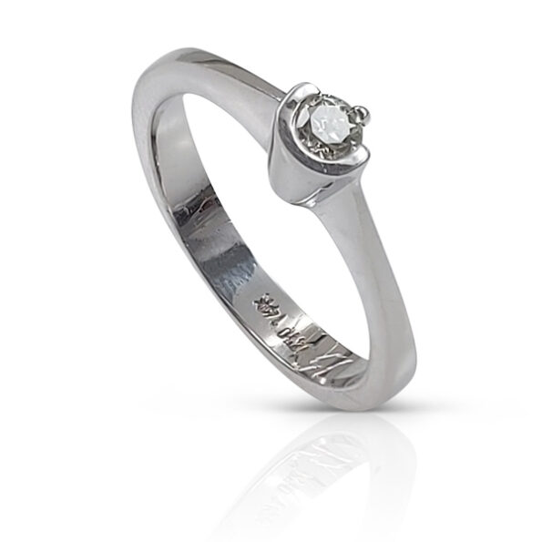 A white gold ring for a woman, weighing 2.50 grams, set with a natural, clean diamond of 0.12 carat.