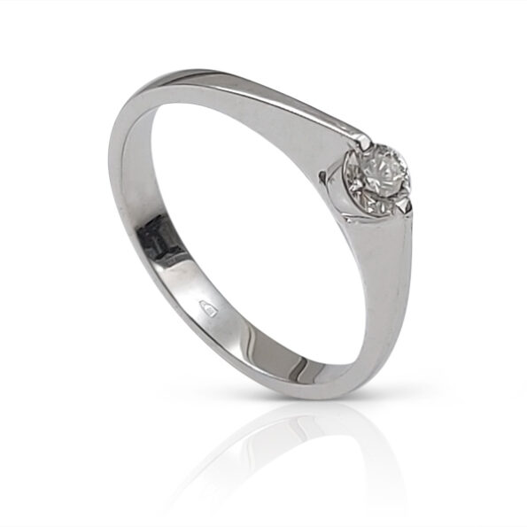 A white gold ring for a woman, weighing 4.20 grams, set with a natural, clean diamond of 0.18 carat.