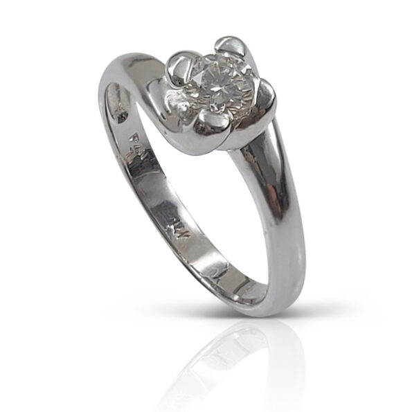 A white gold ring for a woman, weighing 2.89 grams, set with a natural, clean diamond of 0.34 carat.