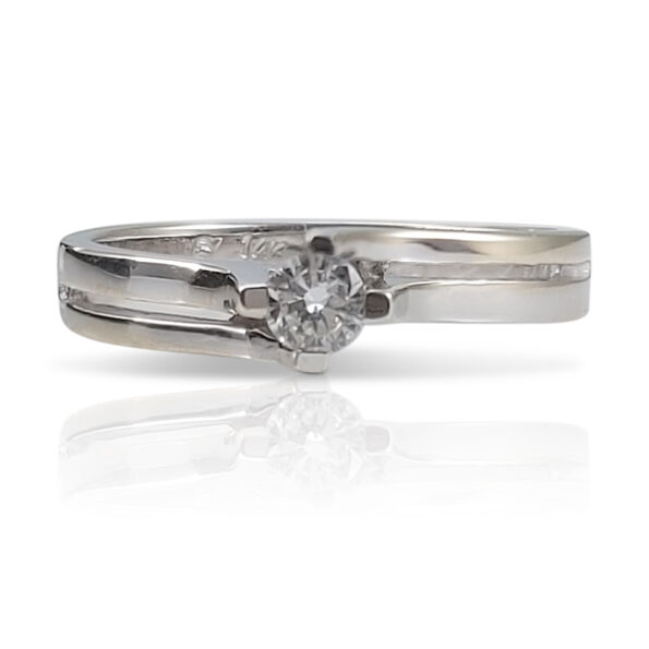 14k White gold engagement ring, weighing 3.30 grams, set with a genuine natural diamond of 0.15 carat.
